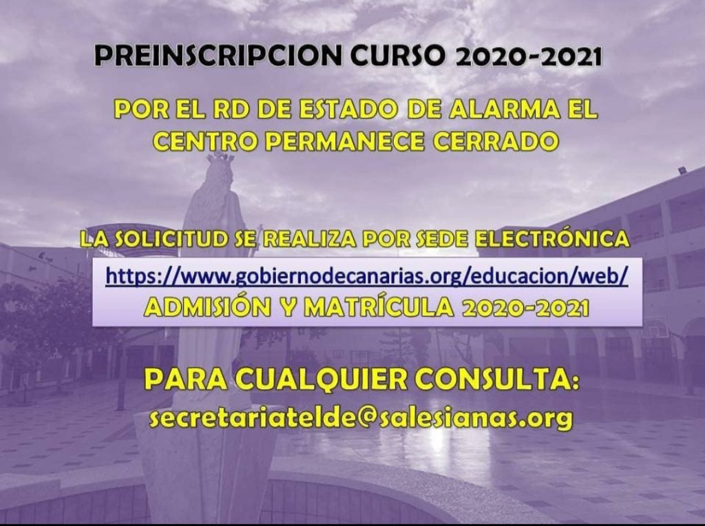 El Centro permanece cerrado pero para cualquier duda pueden hacerlo a través del correo secretariatelde@salesianas.com